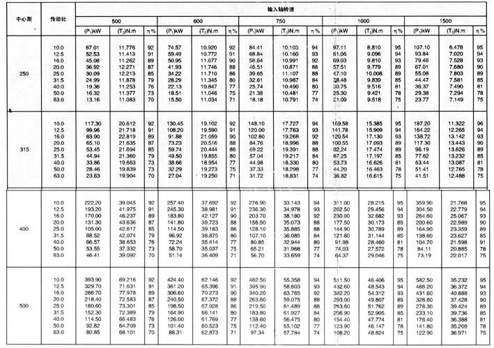 平面包絡環(huán)面蝸桿減速器額定輸入軸功率表